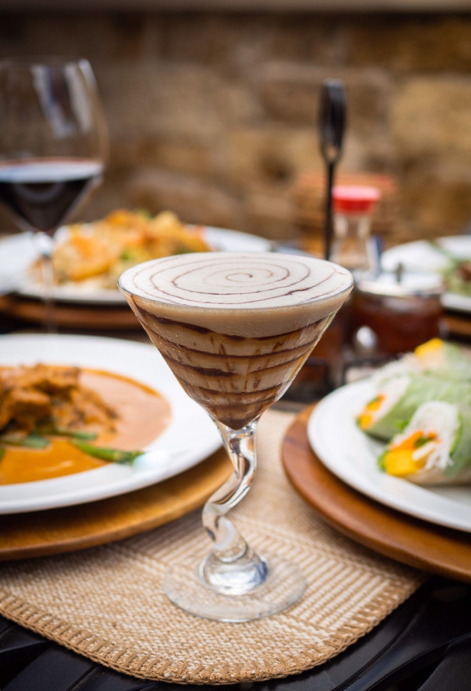 Shrimps, scallops, and blue crab meat served in our coconut green curry sauce with eggplant, zucchini, greenbeans, bell peppers and basil.
