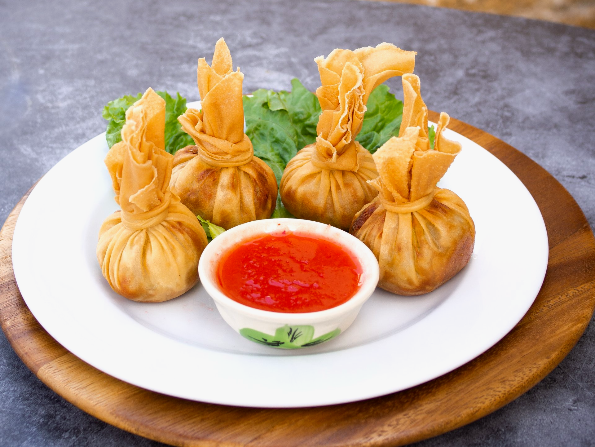 cilantro seasoned shrimp in fried wonton wrappers, served with sriracha cream sauce.