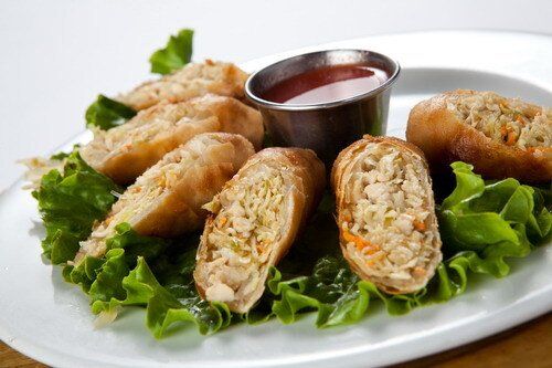 cabbage, mushrooms, glass noodles, and carrots fried in spring roll wrapper. Choice of Chicken or Vegetarian